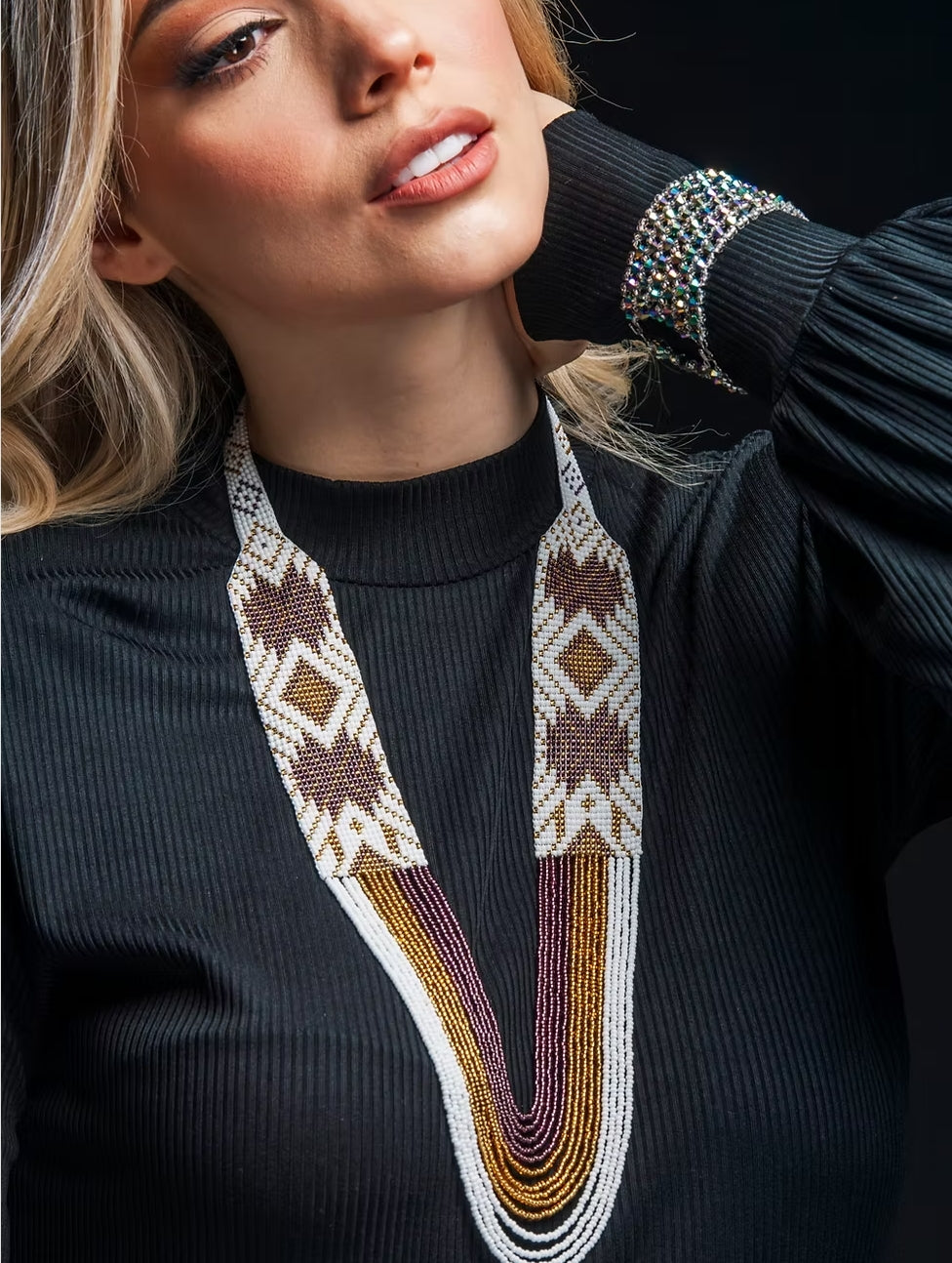 The Izayana necklace is made with chaquira beads and handmade woven with different designs.