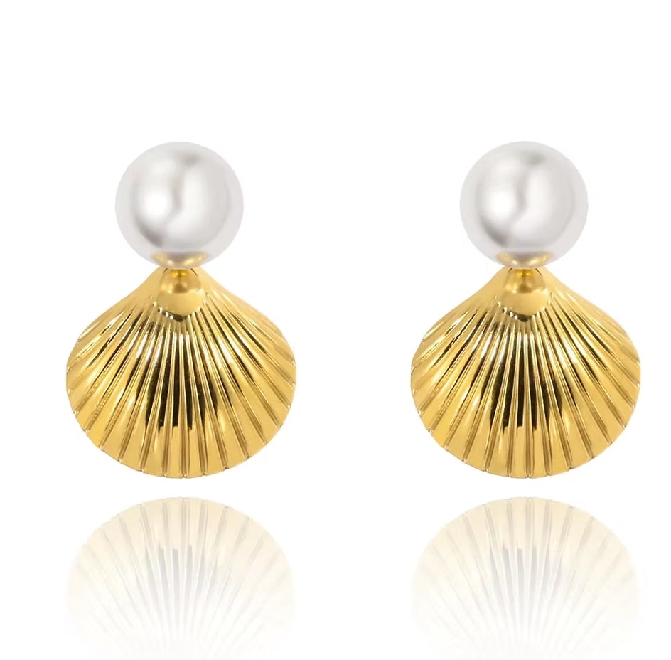 Complete your elegant look with our Jane Pearl Earrings. These stunning earrings feature a delicate pearl stud and a beautiful gold shell design, adding a touch of sophistication to any outfit. Perfect for any occasion, they make a great addition to your jewelry collection.