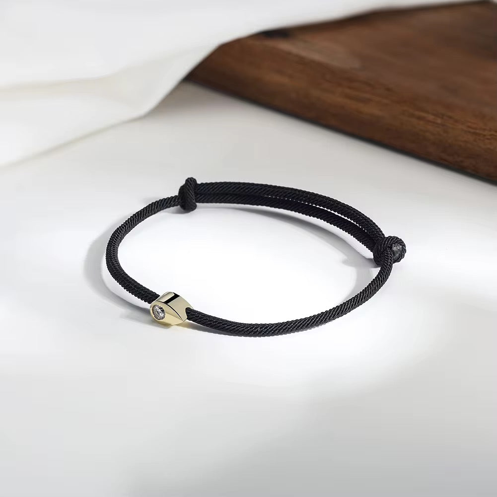 The Light Drop Bracelet captures the essence of simplicity and elegance. Its adjustable black cord highlights a delicate teardrop charm crafted in 925 sterling silver, with an option of 18k gold plating. The central cubic zirconia reflects the light with a unique sparkle, making it a sophisticated piece to wear solo or layered. A perfect detail to gift or wear every day.